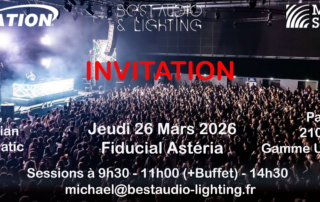 L'équipe Best Audio & Lighting se rapproche de vous : Dans la suite de nos présentations du JTSE 2025, venez participer à nos démos : Cette fois , c'est à la Fiducial Astéria que l'équipe de Best Audio & Lighting se déplace pour un moment unique....Inscriptions et informations auprès de Michael : michael@bestaudio-lighting.fr ou en